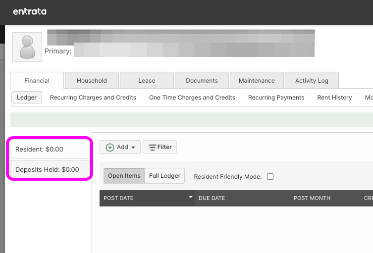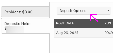 Deposit Held will now show as zero and the resident will no longer reflect a credit (unless they already had an outstanding credit or balance due).