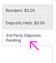 It will now show as pending a 3rd party deposit. Once the funds are sent to Whale, the account will show an Active Deposit. The resident will also be listed on the Security Deposit Audit under 3rd party deposits.