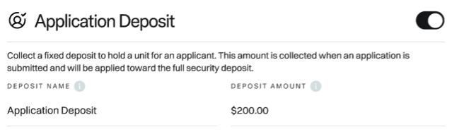 - Set a name for the deposit (the default is Application Deposit, but Holding Deposit is another common option).