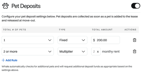 As soon as a pet is added to a lease, Whale will request the amount based on the property's configuration.
